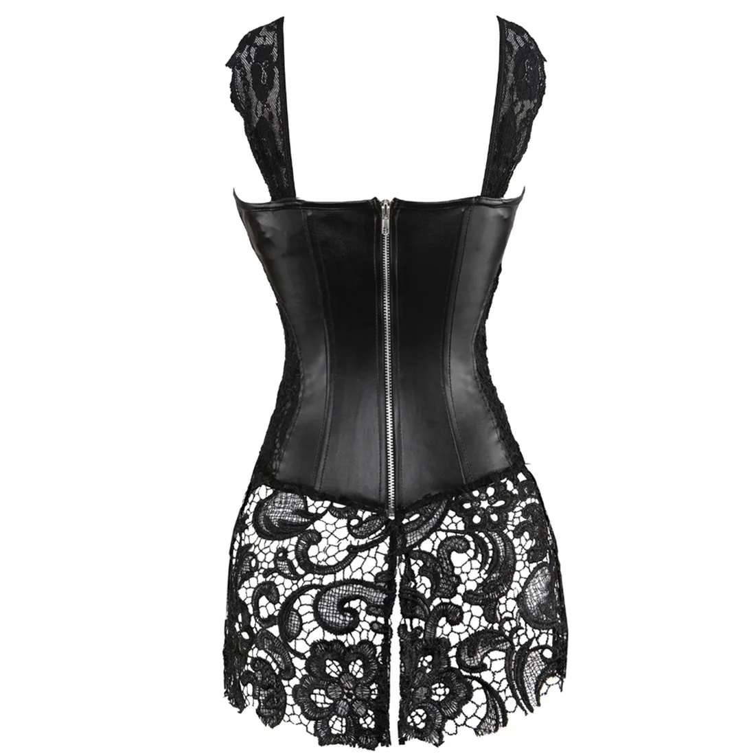 Сексуальный корсет на ремнях из искусственной кожи на молнии; Кружевная юбка для танцев