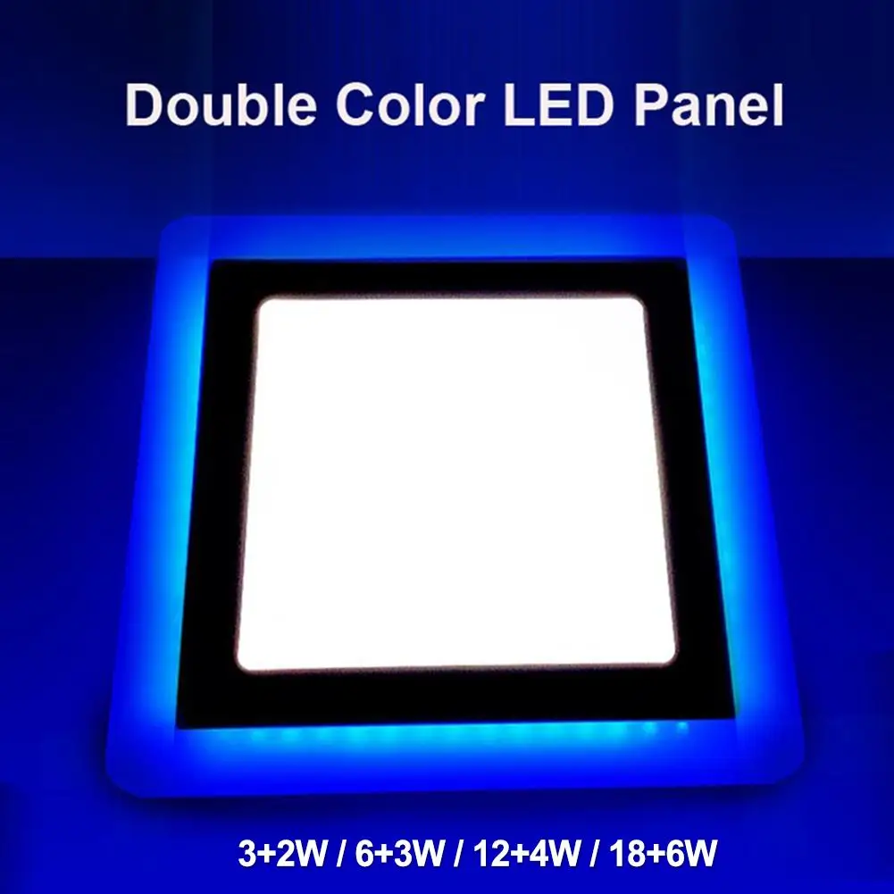 Светодиодный светильник AC85-265V, двойной цвет, 5 Вт, 9 Вт, 16 Вт, 24 Вт, ультра-тонкая квадратная панель, светодиодный потолочный светильник из алюминия