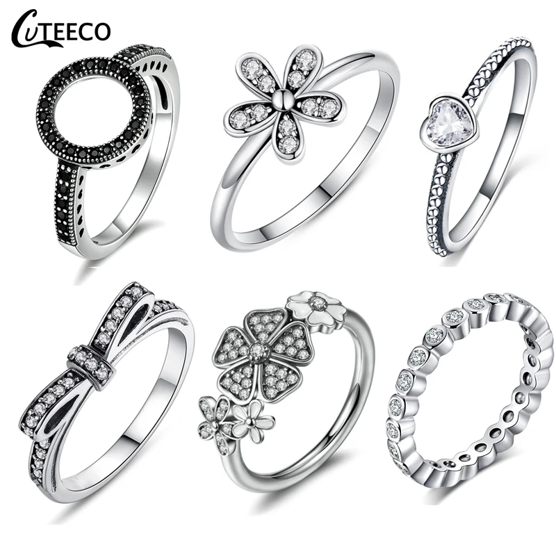 CUTEECO Прямая поставка серебристый цвет прозрачный CZ обручальное кольцо подходит оригинальный бренд кольца для женщин 2018 горячая Распродажа обручальные ювелирные изделия