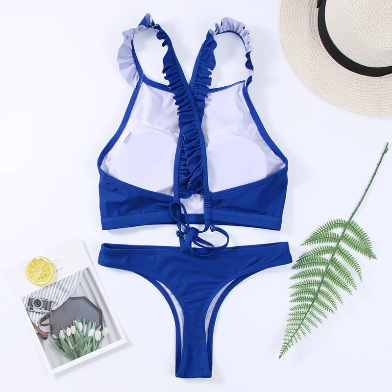 Новинка 2020 бикини с цветочным рисунком комплект оборками женский купальник из