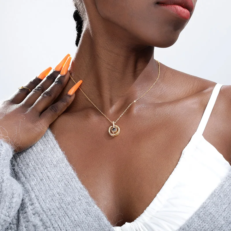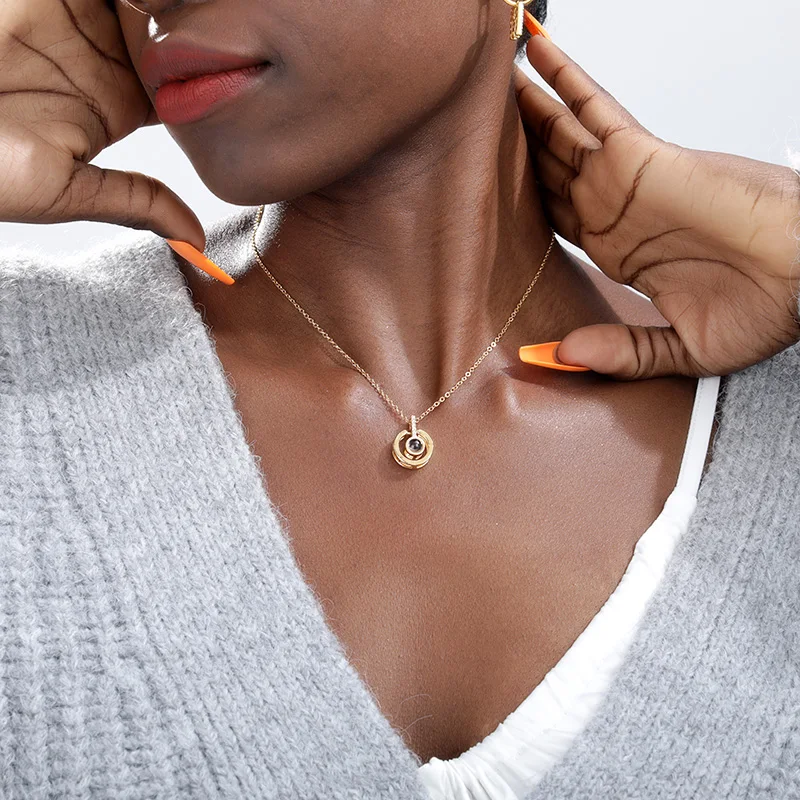 V притягивающее розовое золото 100 языков I Love You кулон ожерелье романтическое ювелирное изделие Рождественский подарок День Святого Валентина чокер