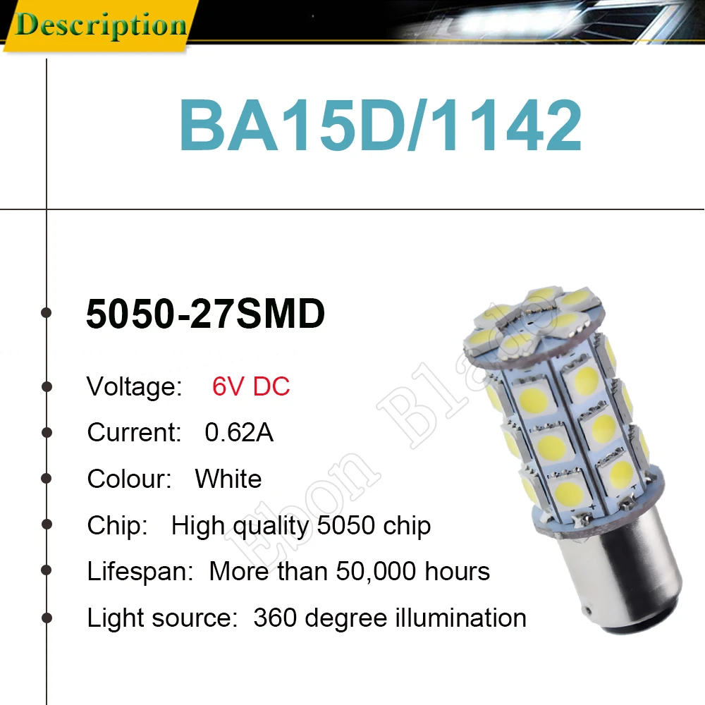 2 шт. 6 вольт 1157 BA15D светодиодный фонарь для автомобильных мотоциклов, лодок, тормозных стоп-сигналов, задний фонарь с двумя пучками 27 SMD белый 6000K 6 V DC