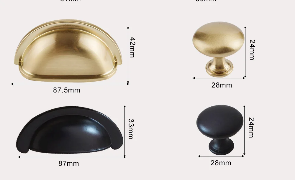 Материал: цинковый сплав Цвет: матовый латунь золото Измерение: Ручка: Диаметр: 1,1 " (28 мм) При установке ручка торчит 1 " (24 мм) Ручка: Длина: 3,4 " (87 мм) Ширина: 1,3 " (33 мм) Расстояние между отверстиями: 3,0 " (76 мм) При установке ручки торчит 0,8 " (20 мм) Винты включены. 1 " (25 мм) длинный.