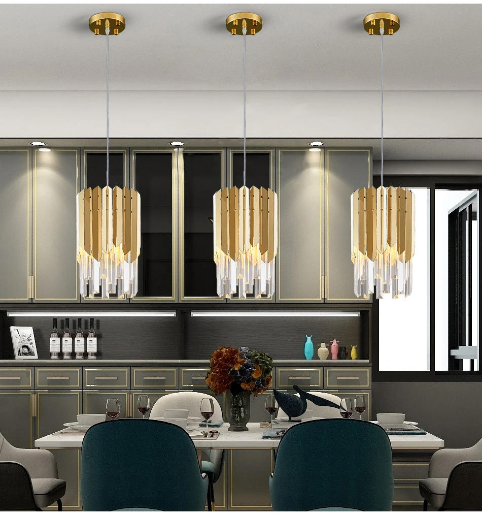 Youlaike Современная хрустальная люстра для столовой, одиночный светильник, подвесной светильник из полированной стали, светильники, светодиодный хрустальный блеск