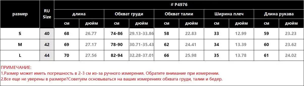 Таблица размеров