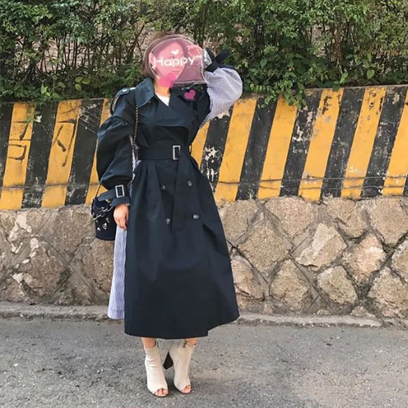 Тренчкот женский длинный с поясом Модный Плащ цвета хаки в Корейском стиле