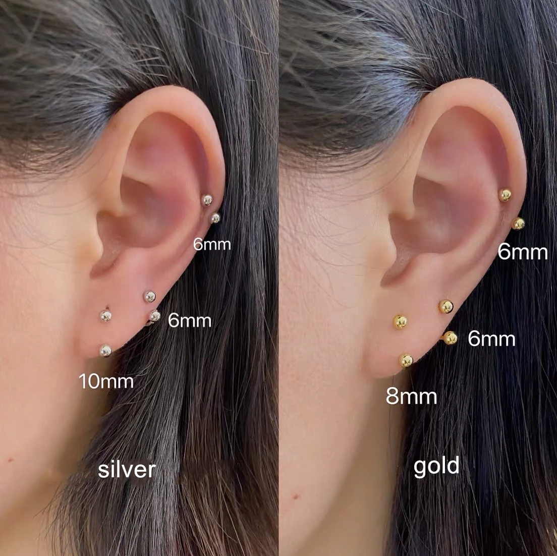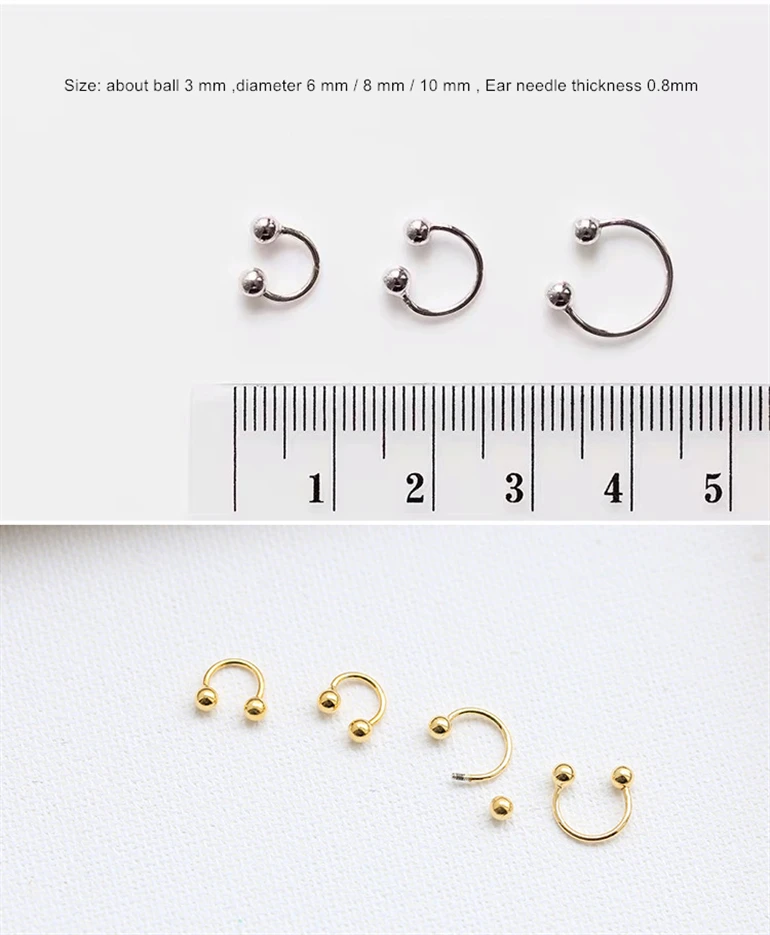 Размер:О поджигайте мяч 3 мм, Внутренний диаметр: 6 мм/8 мм/10 мм, серьги иглы толщина 0,8 мм
