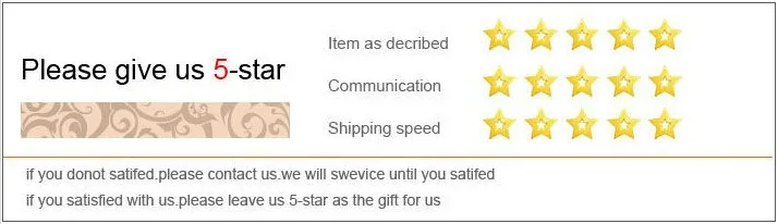 Стандартная служба – авиапочта Китая.Обычно мы отправляем товары в течение 3–5 дней после подтверждения оплаты за 24 часа. Пожалуйста, пришлите нам электронное письмо перед оплатойЕсли вы хотите изменить адрес доставки.Почта Китая воздухаПочта обычно прибудет в течение 15-25 рабочих дней после отправки. Иногда для таможни или погодыПроблема будет отложена на несколько дней. Это может быть до 30-45 дней.В праздники (например, Рождество, китайский Новый год и т.д.) доставка может занять больше времени. Пожалуйста, добавьтеЕще 5-10 дней в качестве задержки.Отзывы:Удовлетворение ваших запросов и положительная обратная связь очень важны для нас. Пожалуйста, оставьте положительный отзывы и 5 звездДовольны нашими товарами и услугами. Если у вас есть какие-либо проблемы с нашими товарами или услугами, пожалуйста, не стесняйтесьСначала свяжитесь с намиПеред тем как оставить негативный отзыв. Мы сделаем все возможное, чтобы решить любую проблему и предоставить вамС лучшим обслуживанием клиентов.Смотрите так же другие товары: