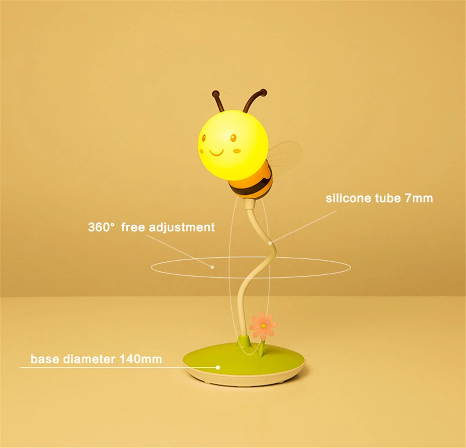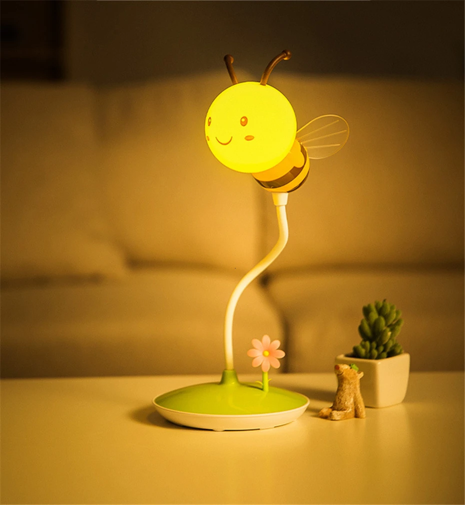 Светодиодный ночник с рисунком пчелы, зарядка через usb, ABS лампа зажигающаяся от прикосновения, подарок для детей, затемнение, настольная лампа для сна, спальни, ночник, домашний декор