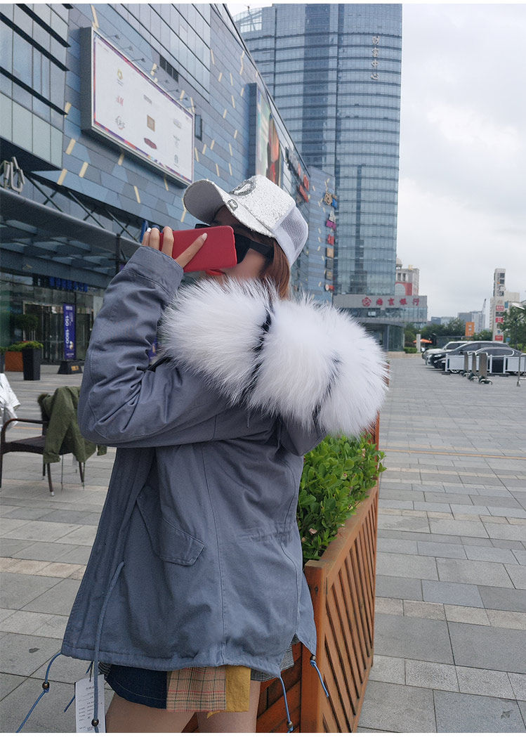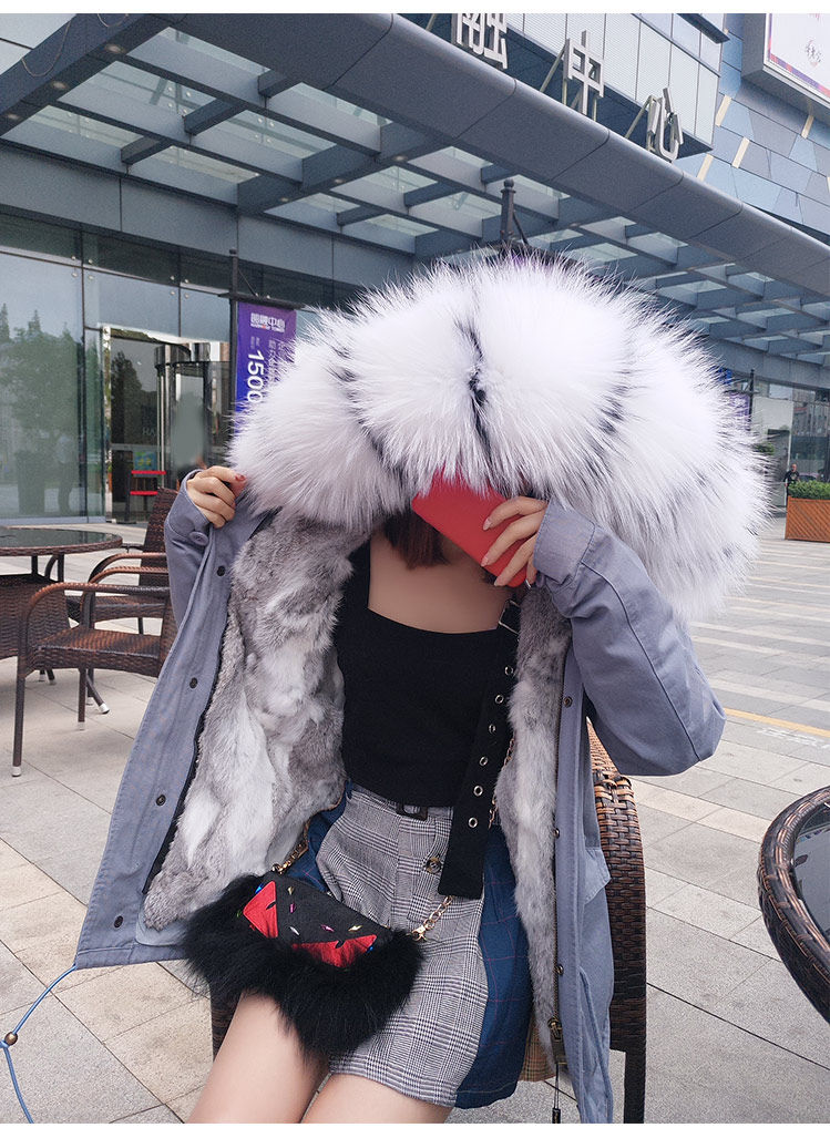 13073 2016 Новый Настоящее кролик шуба raccoondog меховой воротник с капюшоном пальто