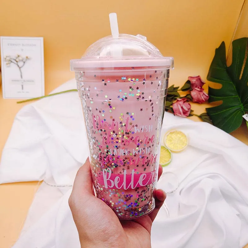 Японская симпатичная мультяшная бутылка для девочек 400 мл, прозрачная пластиковая бутылка для Сиппи, Студенческая портативная бутылка для сока большой вместимости