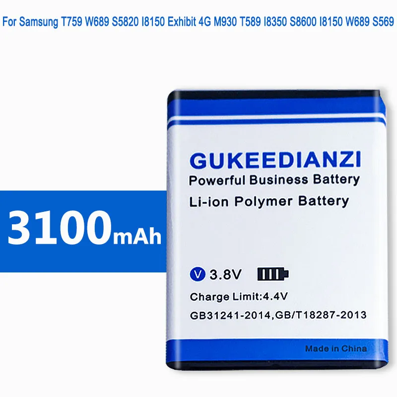 GUKEEDIANZI EB484659VU Battery For Samsung T759 W689 S5820 I8150 Exhibit 4G M930 T589 I8350 S8600 I8150 W689 3100mAh Battery