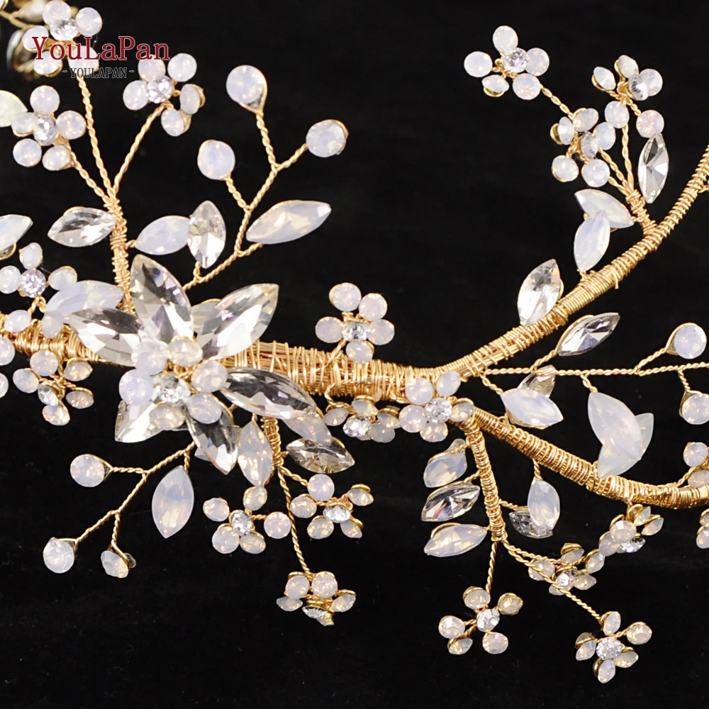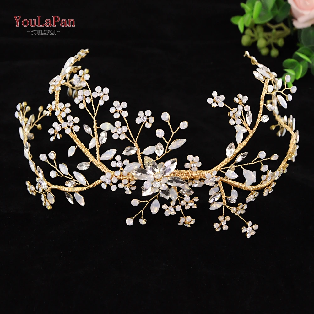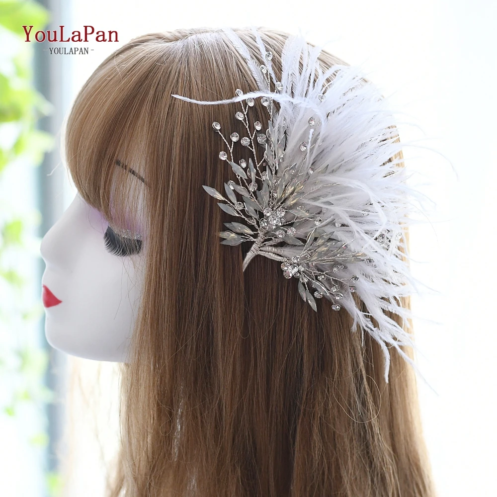 YouLaPan винтажные бриллиантовые Свадебные украшения для волос свадебная корона серебряные Стразы свадебная тиара перо свадебные головные уборы