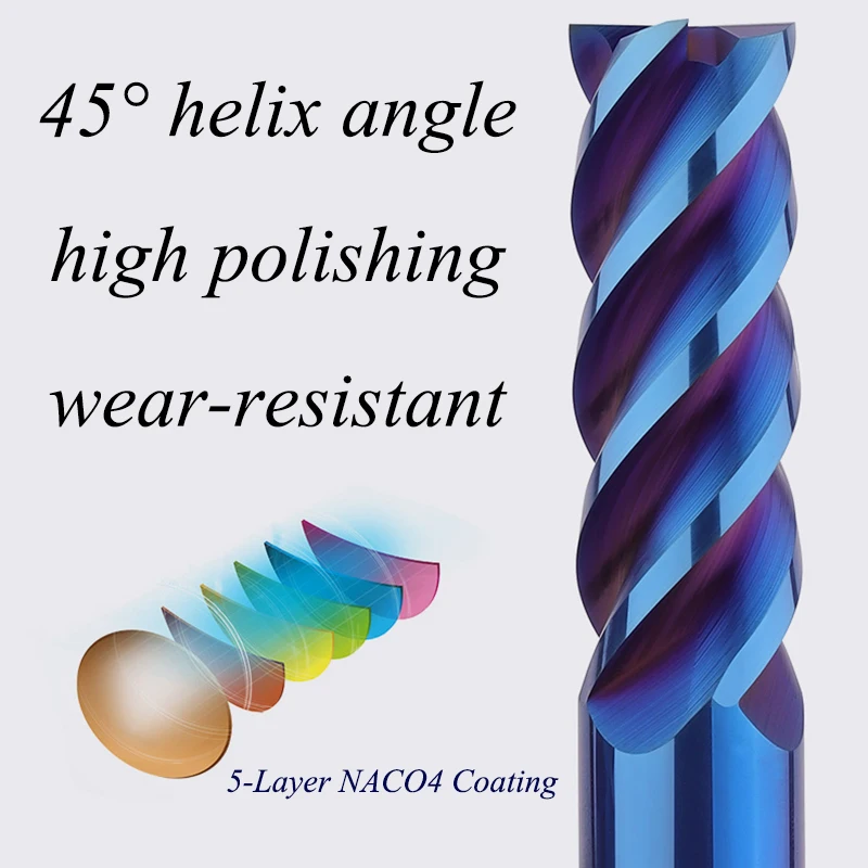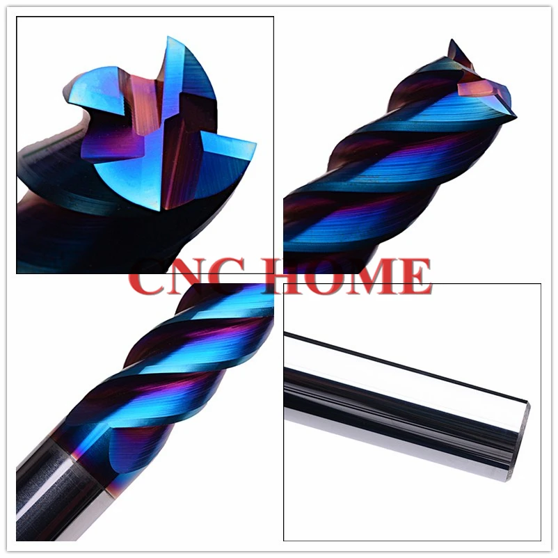 1 шт. HRC65 4 флейты 3 мм 4 мм 5 мм 6 мм 8 мм 12 мм нано-синий сплав