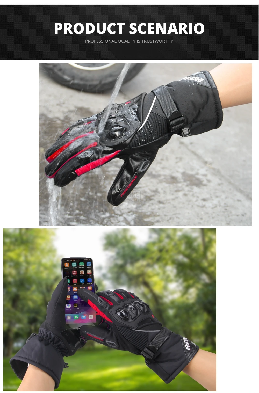 防水:这些摩托车手的手套是防水,没问题骑几个小时在正常降雨,甚至一个小时下大雨,一直保持你的手在寒冷的雨雪天气干燥和温暖的一天