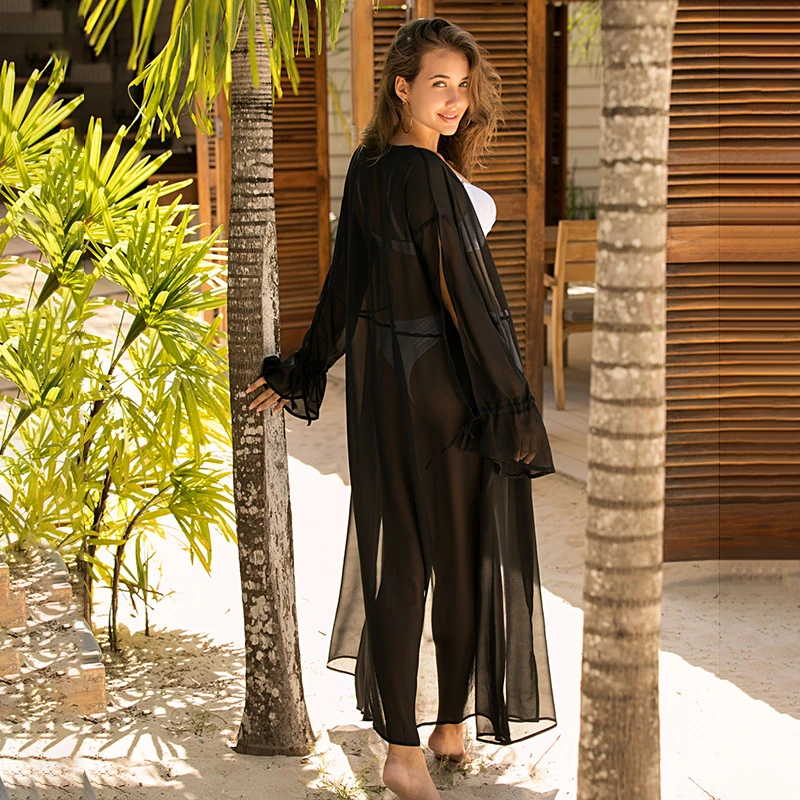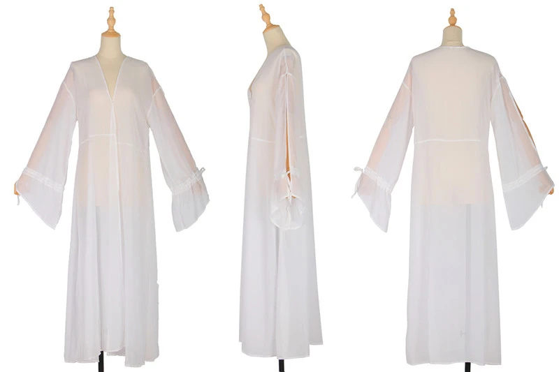 Новинка 2020, пляжное платье, накидка, бикини для женщин, длинный кафтан, пляжная одежда, летний купальник с длинным рукавом, накидка, пляжная одежда, Белая Туника
