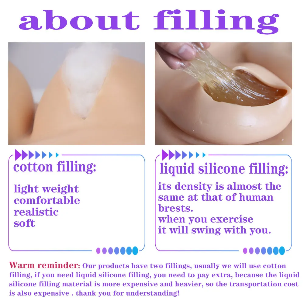 Теплое напоминание: наши продукты имеют две пломбы, обычно мы используем хлопковое наполнение, если вам нужно жидкое Силиконовое наполнение, вы должны заплатить дополнительно, из-за того, что материал для наполнения жидкого силикона дороже и тяжелее, стоимость транспортировки также стоит дорого, спасибо за понимание!