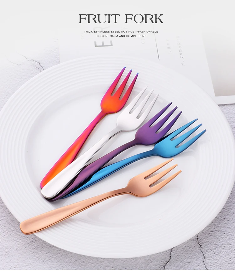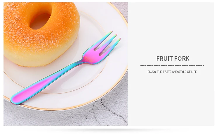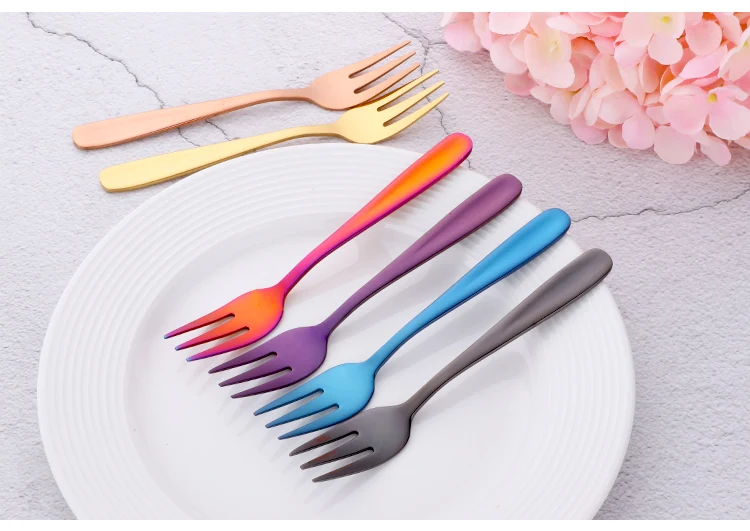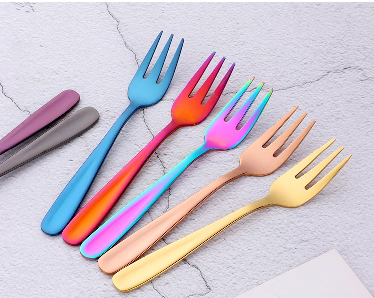 2 шт./компл. из нержавеющей стали Радуга мини торт фрукт вилка ужин салат вилка Посуда черный золотой десерт вилка сервер столовая посуда набор