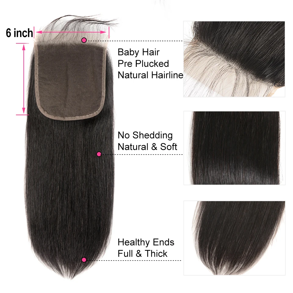 AliPearl волосы прямые 6x6 закрытие человеческие волосы Кружева Закрытие с детскими волосами швейцарское кружево 10-20 дюймов бразильские волосы Remy натуральный цвет