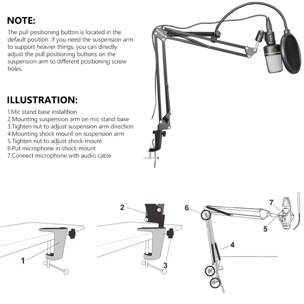 1. Ударные Крепления подходят только для микрофона диаметром 43-46 мм. Проверьте размер микрофона перед заказом.