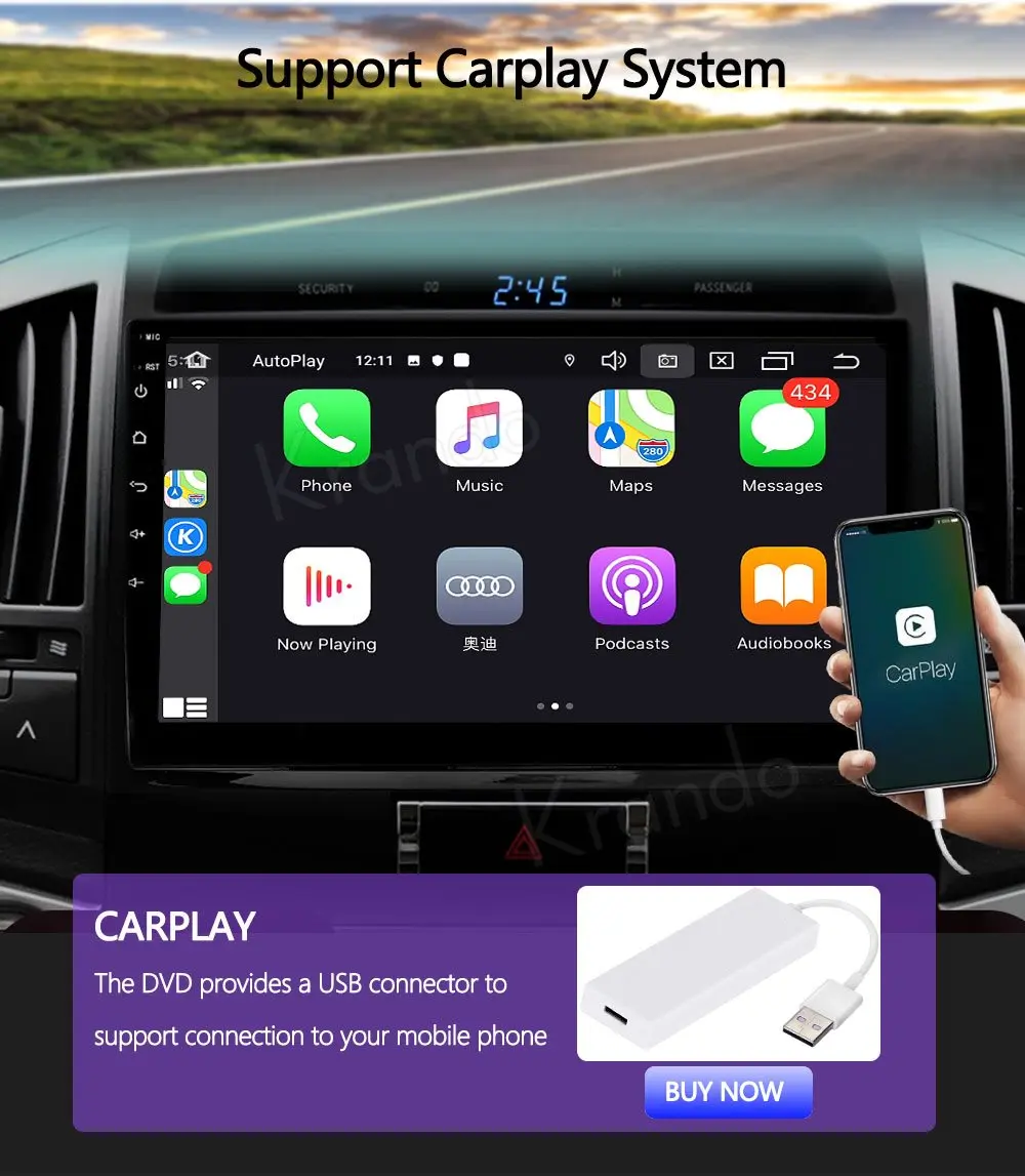 Этот DVD обеспечивает usb-разъем, который поддерживает подключение к телефону, легко управлять и обрабатывать телефон через устройство; Он называется ZLINK в системе; (Только 4 Гб + 64 ГБ версия, встроенная в Carplay), если вы хотите функцию carplay, вы можете нажать, чтобы купить extranal carplay.