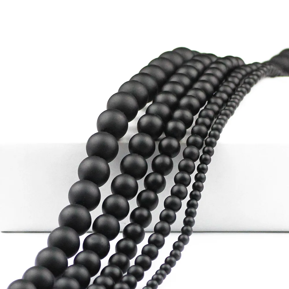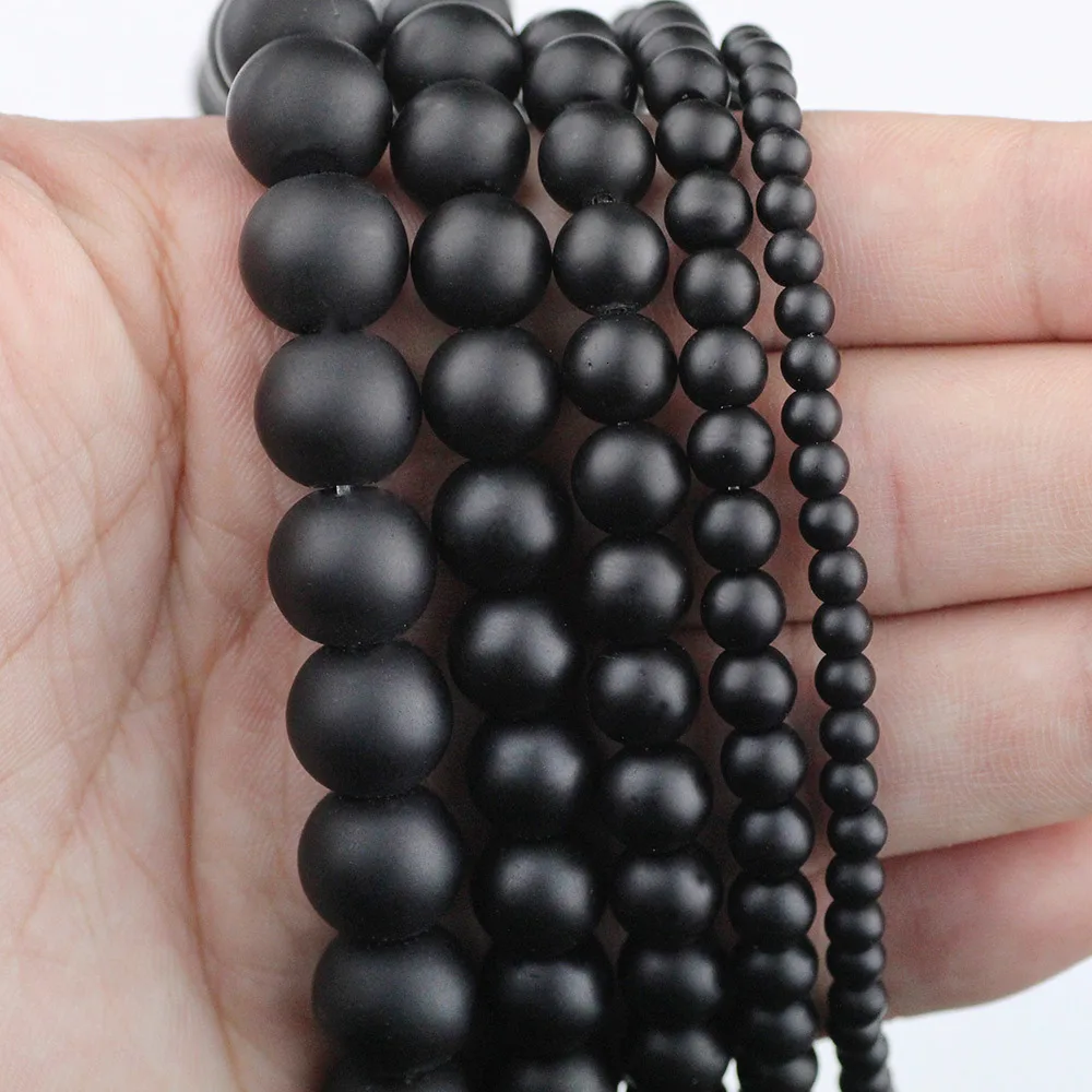 Натуральный матовый камень черный камень бисер 6/8/10/12 мм с эффектом потертости; Круглые бусины для изготовления ювелирных изделий аксессуары для изготовления браслетов DIY 15"