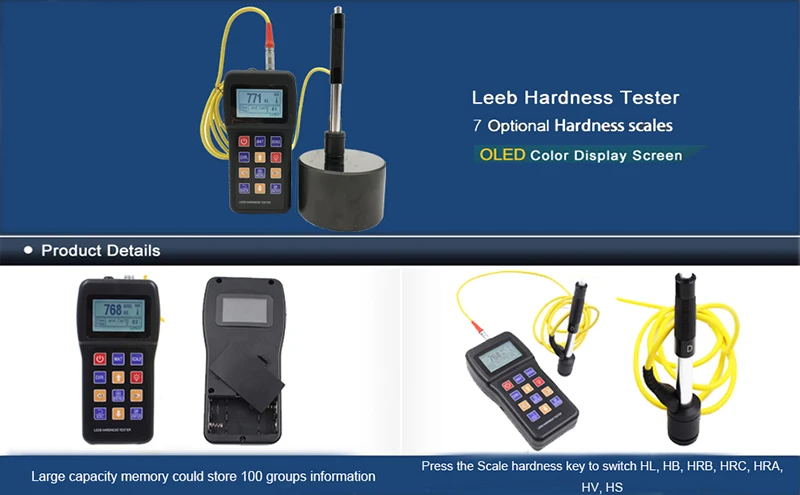 * Широкий диапазон измерений. Он может измерить твердость всех металлических материалов. Прямой дисплей твердости весы HRB, HRC, HV, HB, HS, HL