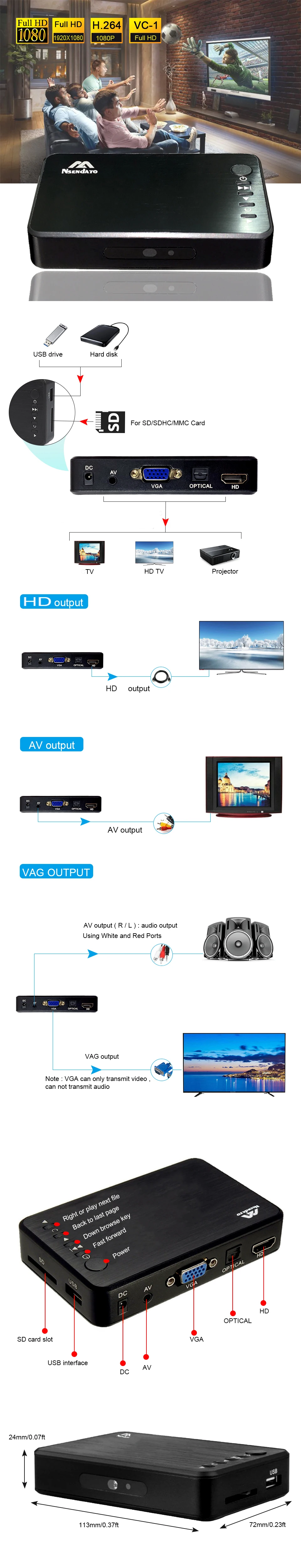 Мини Full HD мультимедийный плеер Autoplay 1080p USB внешний HDD SD U диск медиаплеер с HD VGA AV выход для MKV RMVB