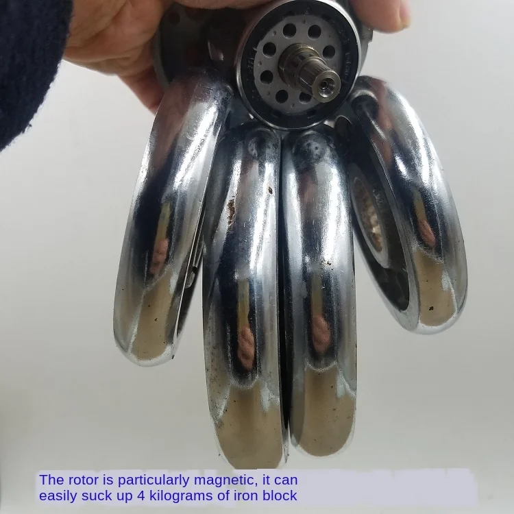 Мотор-это трехфазный бесщеточный 12N8P, статор катушечная наматывается диаметром мм, И состоит из двух групп из 3 групп катушек (я не знаю, серия или параллельная). В 2-ступенчатый редкоземельный магнит завернут в Нержавеющая Сталь Анти бунт ротора, каждый угол немного офсетная печать, и каждый полюс ротора склонен в общей сложности 16 магниты из редкоземельных металлов,