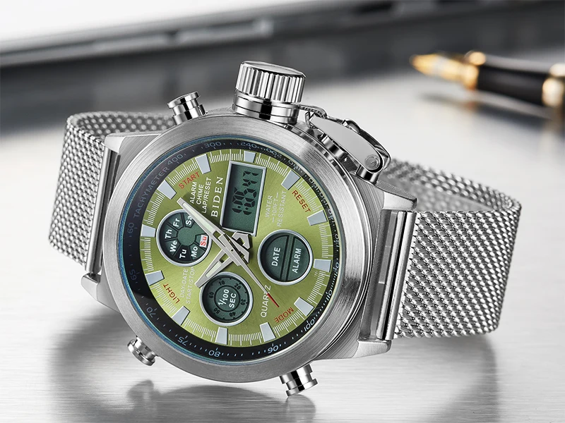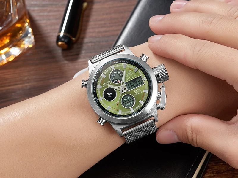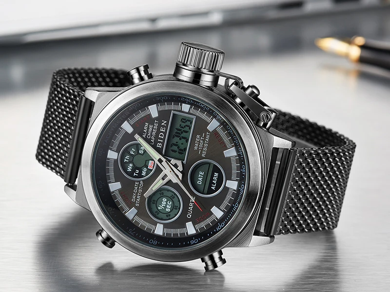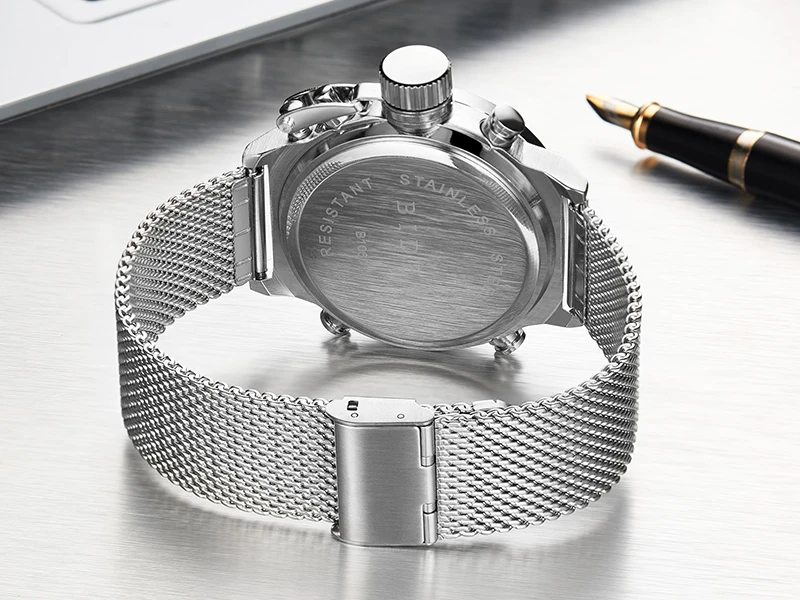 Новые СВЕТОДИОДНЫЕ Цифровые мужские часы, кварцевые наручные часы, мужские спортивные военные часы с сетчатым ремешком из нержавеющей стали, мужские часы relogio masculino