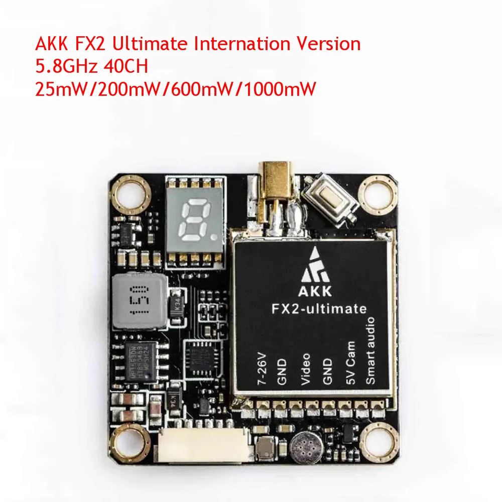 Фирменное наименование: АКК Наименование товара: FX2 Ultimate International Version Входное напряжение: от 7 в до 26 в Дополнительные функции: Smart audio 1000 мВт Источник питания: 5 В камера при 500 мА макс. Выходная мощность: 25/200/600 мВт/1000 МВт Антенного разъема: MMCX Разъем кабеля: JST, 6pin Размеры: 36x36 мм, отверстие 30,5x30,5 мм Вес: 9,6 г (без антенны)