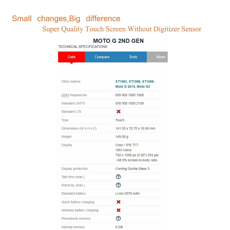 Супер качество для Motorola Moto G2 G + 1 XT1063 XT1069 XT1068 сенсорный экран передняя внешняя стеклянная панель объектив без ЖК-дисплея дигитайзер Черный Белый Замена 5,0"