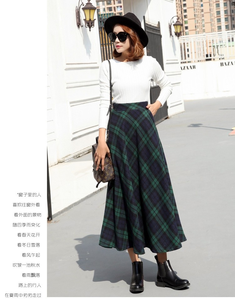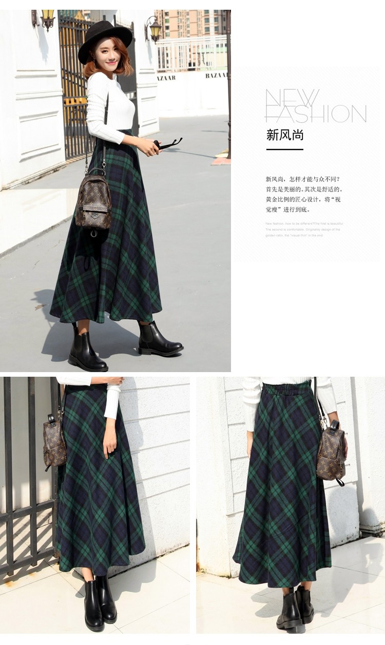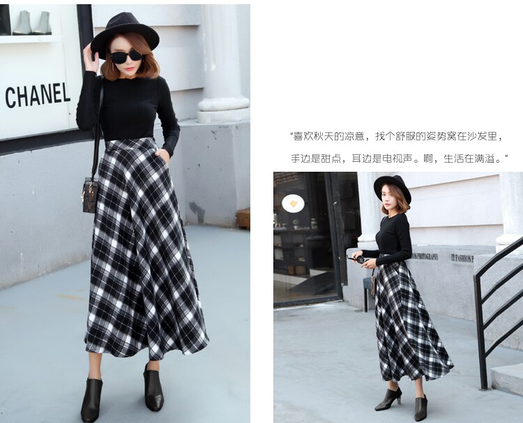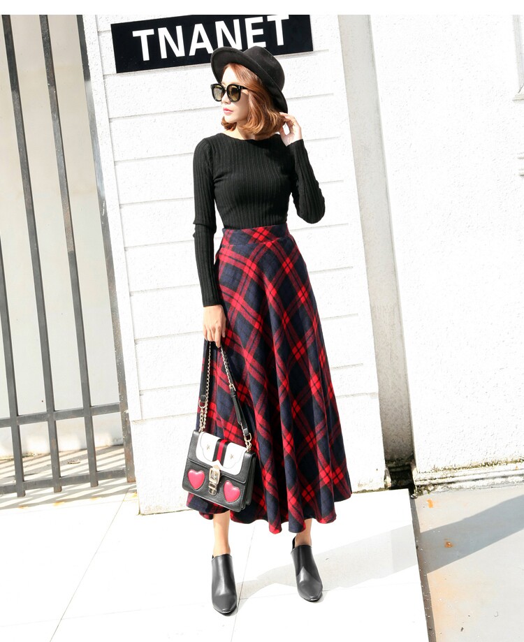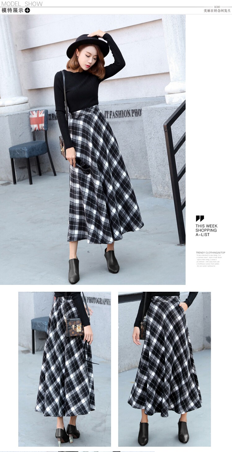 Длинная шерстяная юбка в клетку с эластичной высокой талией, зимняя теплая винтажная трапециевидная юбка большого размера, модель DF924 на осень, 2019