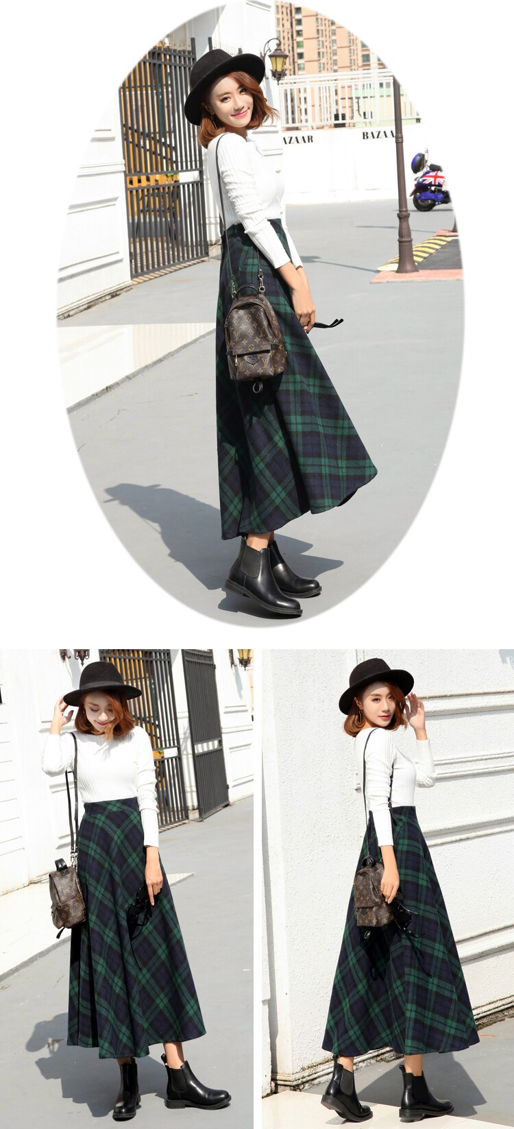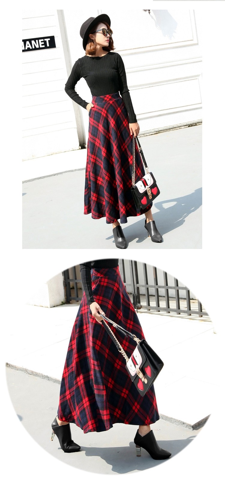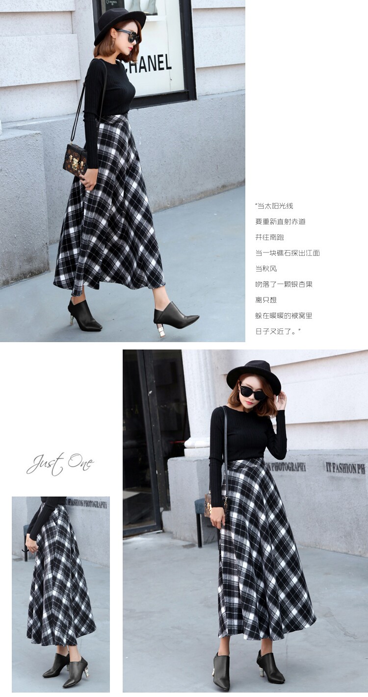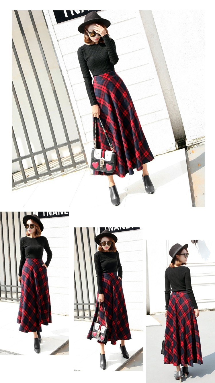 Длинная шерстяная юбка в клетку с эластичной высокой талией, зимняя теплая винтажная трапециевидная юбка большого размера, модель DF924 на осень, 2019