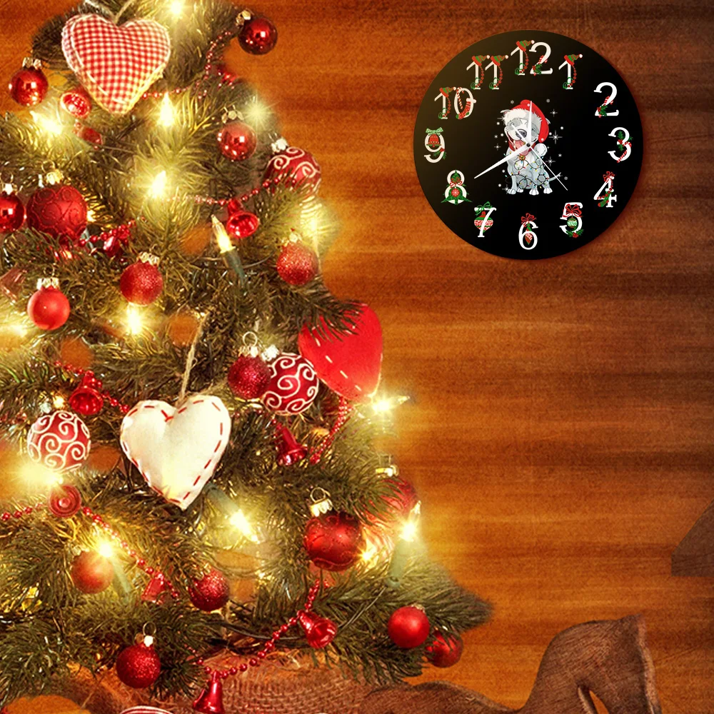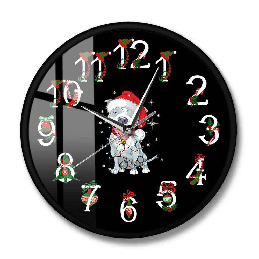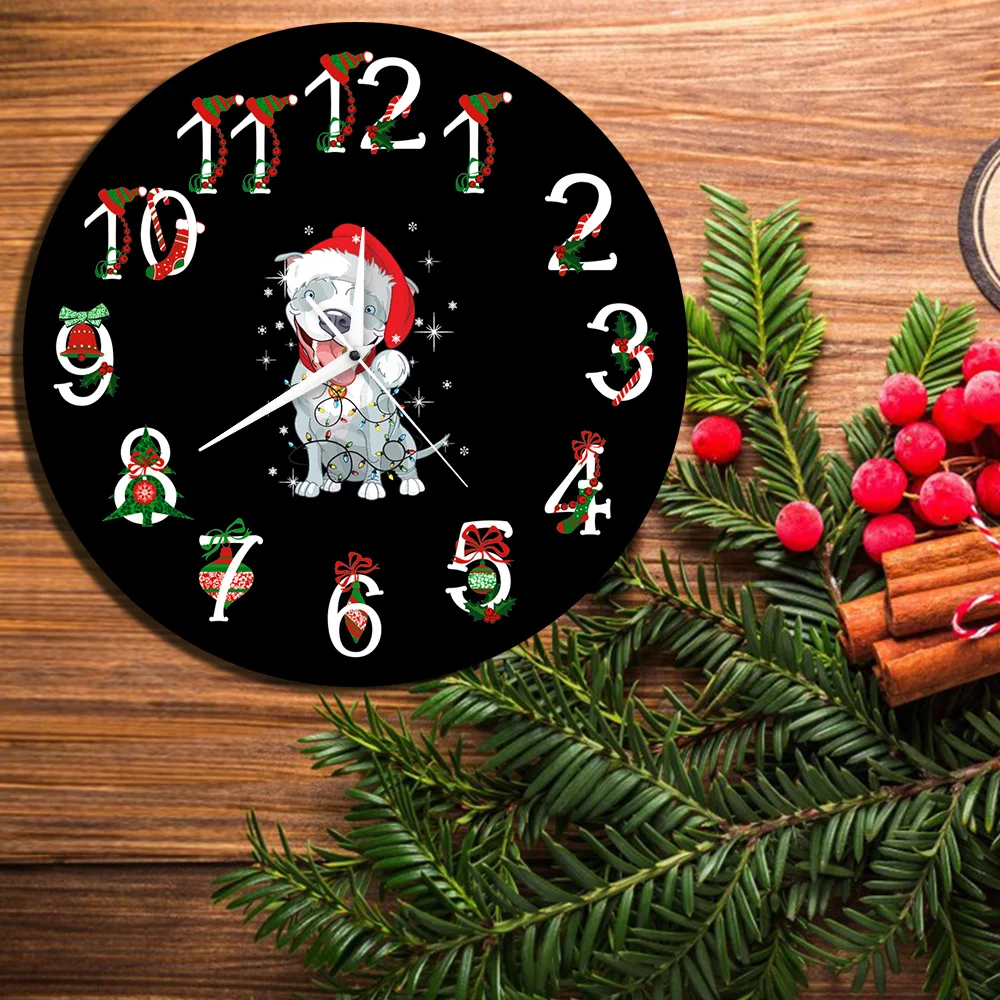 Рождественские настенные часы с изображением собаки питбула