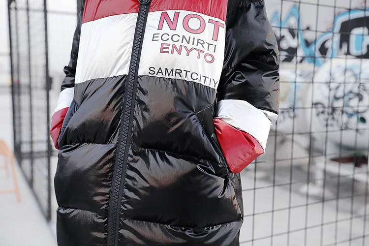Vefadisa, зимняя цветная парка с капюшоном, с буквенным принтом, теплое пальто для женщин, на молнии, с ремешком, хлопковая плотная одежда, длинное пальто, ZLD184