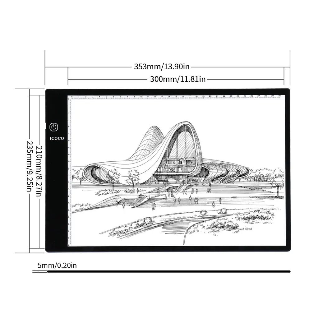 Ультра-тонкий A3/A4 световой короб 3-х уровневый Плавная тусклая с usb-портом, светодиодная индикаторная карта памяти Функция защита глаз трассировочный свет Pad планшет для рисования