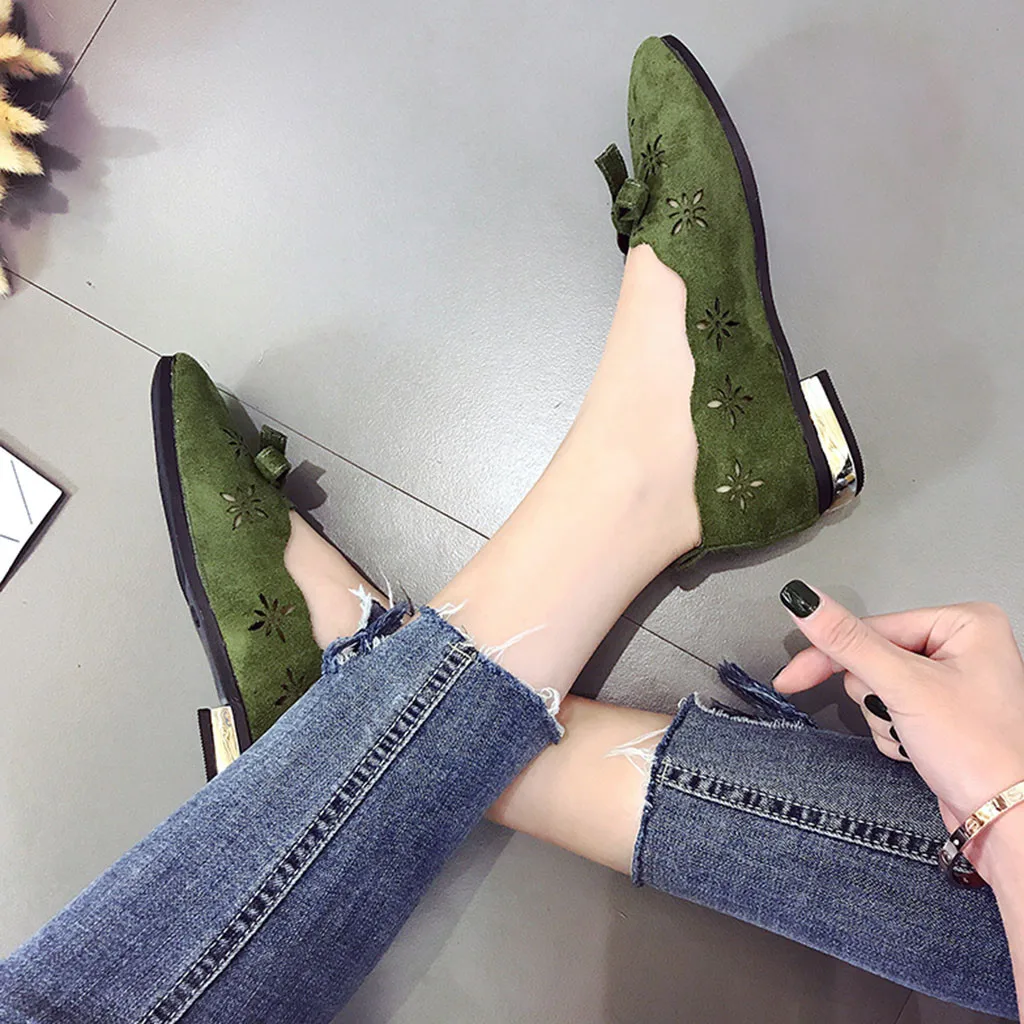 Женский однотонный бант-бабочкаКвадратный носокПлоский каблукМокасиныОдиночныйОбувь