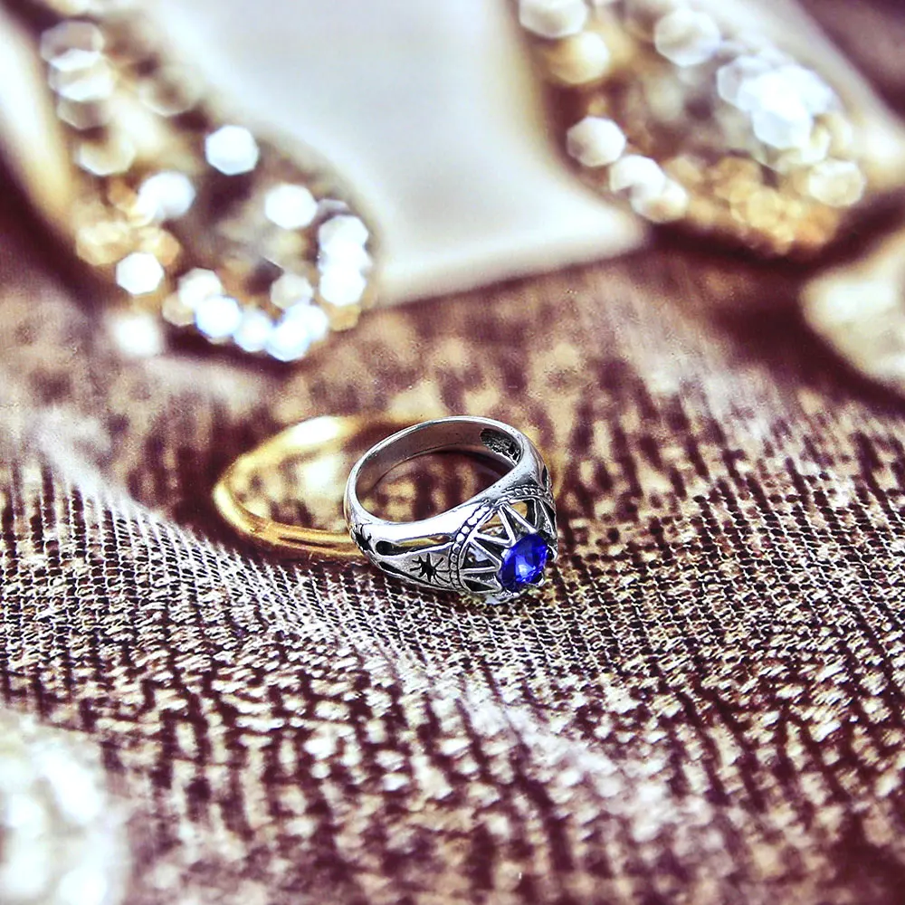 SUNSPICE MS. Античное кольцо для женщин, винтажное голубое ювелирное изделие из смолы, богемное серебряное натуральный богемский камень кольцо с подвеской в стиле панк