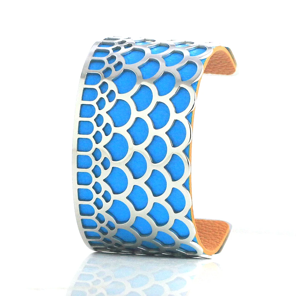 Манжеты для рыбы, ширина 40 мм и серебристая отделка. Ваш браслет в сочетании с двусторонней цветной кожей можно носить 26 цветов в зависимости от вашего настроения и стиля. Регулируемые, наши манжеты обычно подходят для запястья от 14 до 16 см.