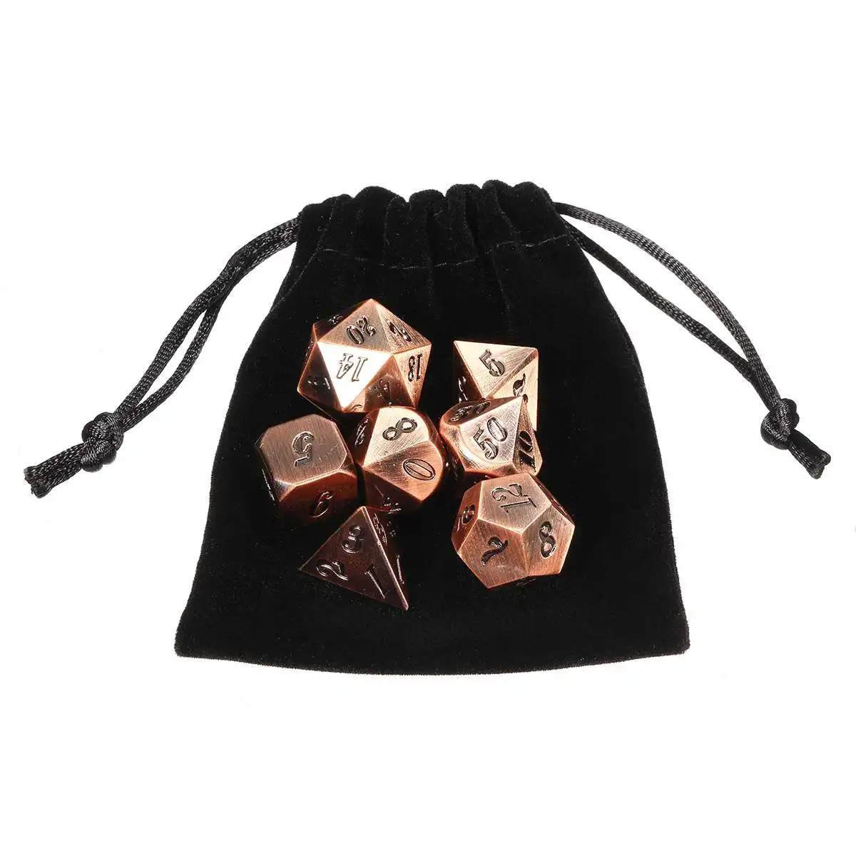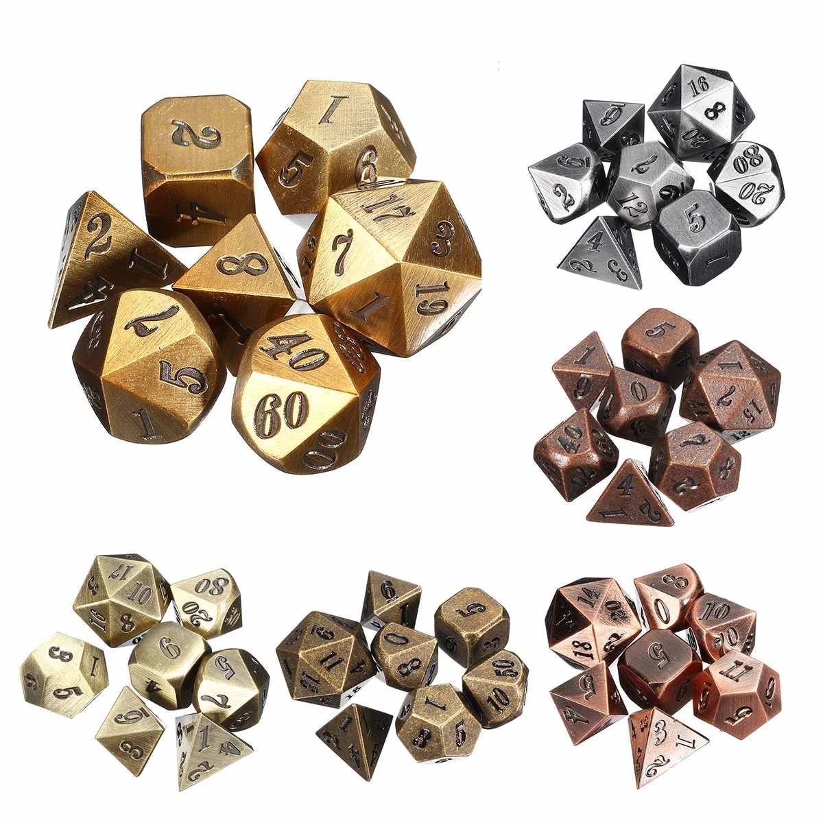 Каждый цвет поставляется с 7 различными игральными костями: 4, 6, 8, 10, 12, 20 сторонних игральных костей и процент (%) игральных костей.