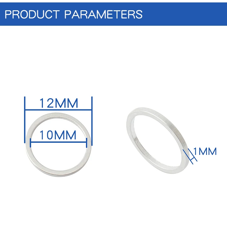 Размеры: 12 мм * 1 мм Толщина 1 мм, внутренний диаметр прокладки 10 мм