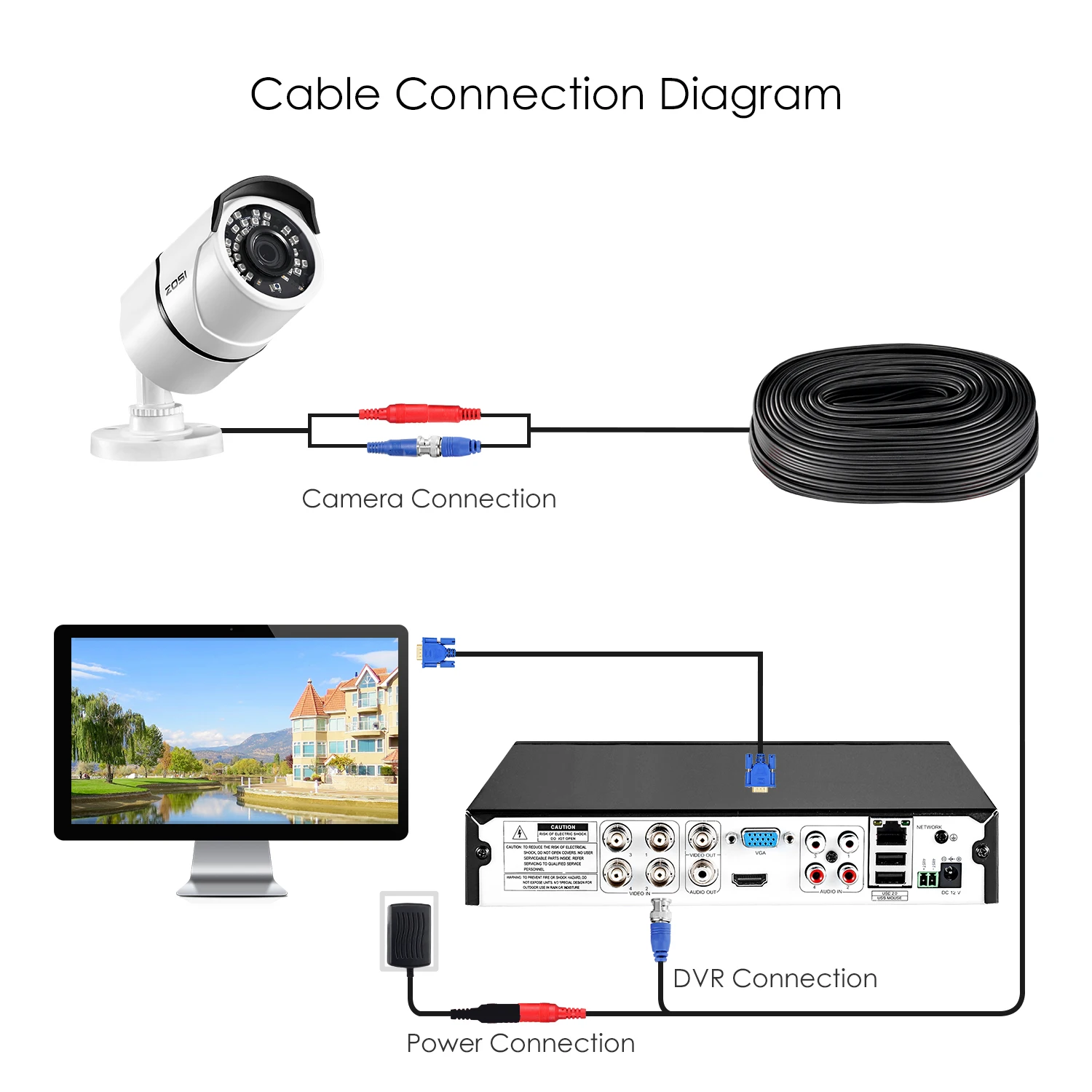 -Этот предварительно завершенный кабель CCTV идеально подходит для передачи видео и питания.