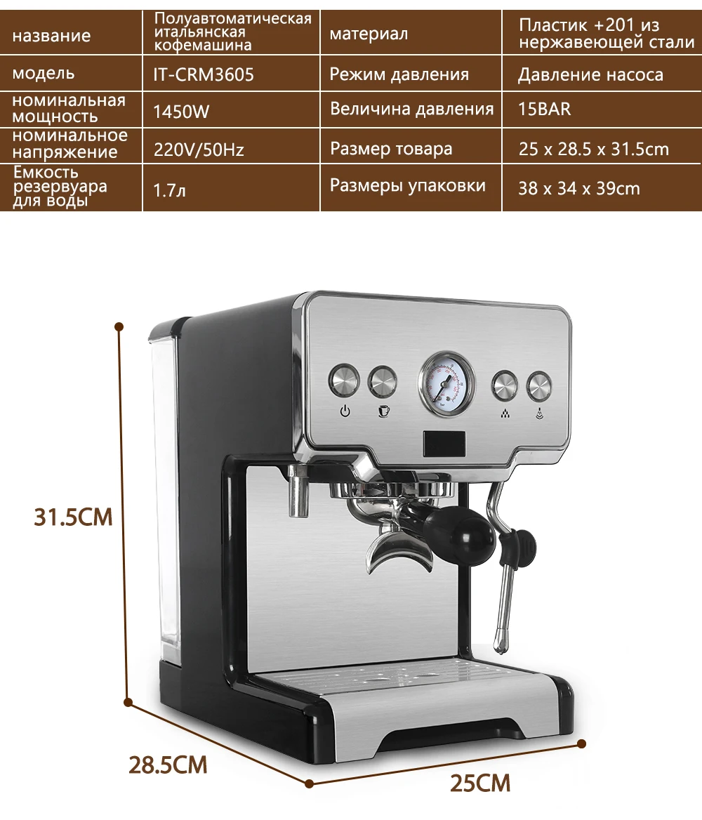 ITOP 15 бар итальянская Полуавтоматическая кофеварка капучино молочный