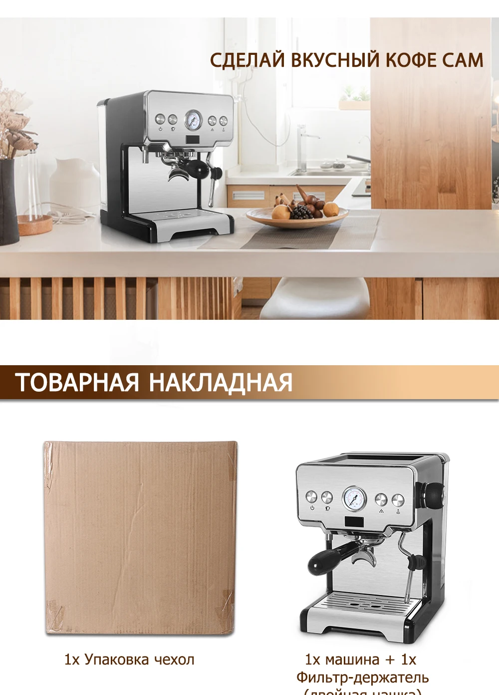 Вопросы и ответы1. В: Манометр не изменилсяО: Используемый кофейный порошок недостаточно мелкий. Рекомендуется использовать молотый кофе более мелкого помола.2. В: экстрагированный кофе не производит масла.A: Толщина кофейного порошка не может обеспечить эффект производства масла, пожалуйста, отрегулируйте толщину кофейного порошка.3. В: Нет кофе / горячей воды из заварочной головки.О: Время предварительного нагрева кофемашины не истекло, и горячая вода не вытекает. Пожалуйста, убедитесь, что кофемашина предварительно нагрета до начала приготовления кофе. Кофемашину следует регулярно чистить, чтобы предотвратить засорение заварочной головки / выхода горячей воды остатками кофе.4. В: Сколько кофейного порошка мне нужно добавитьA: Одна чашка: 12-14 граммов. Двойная чашка: 18-20 граммКЛИЕНТАМУ нас есть запасы в Германии, России, Великобритании и Саудовской Аравии, они могут быть доставлены в короткие сроки, и вам не нужно платить никаких налогов.Акция ограничена, торопитесь!Любые проблемы, пожалуйста, свяжитесь с нами в первый раз.С наилучшими пожеланиями!