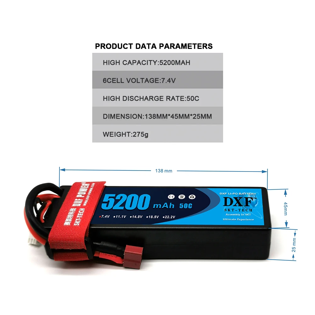 DXF является одним брендом батареи Шэньчжэнь SKT Technology Co., Ltd Компания основана в 2016 году, является ведущим производителем RC LiPo батареи на основе Шэньчжэнь Китай.DXF батареи предлагают отличную ценность, предоставляя заводские прямые цены и качество, которое соответствует или превышает качество других крупных производителей батарей. Все батареи DXF соответствуют стандартам RoHS и CE. DXF используют только элемент класса А. DXF-город любителей хоббиткинга. DXF окажет вам максимальное обслуживание.