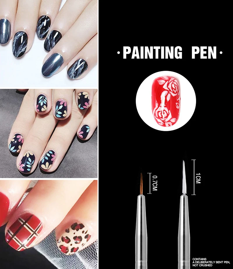 ROSALIND 15 шт./компл., инструменты для ногтей, кисть для ногтей, кисть для рисования, ручка для рисования, кисть для дизайна ногтей, Гель-лак, кисти, инструменты, гелевая ручка для рисования