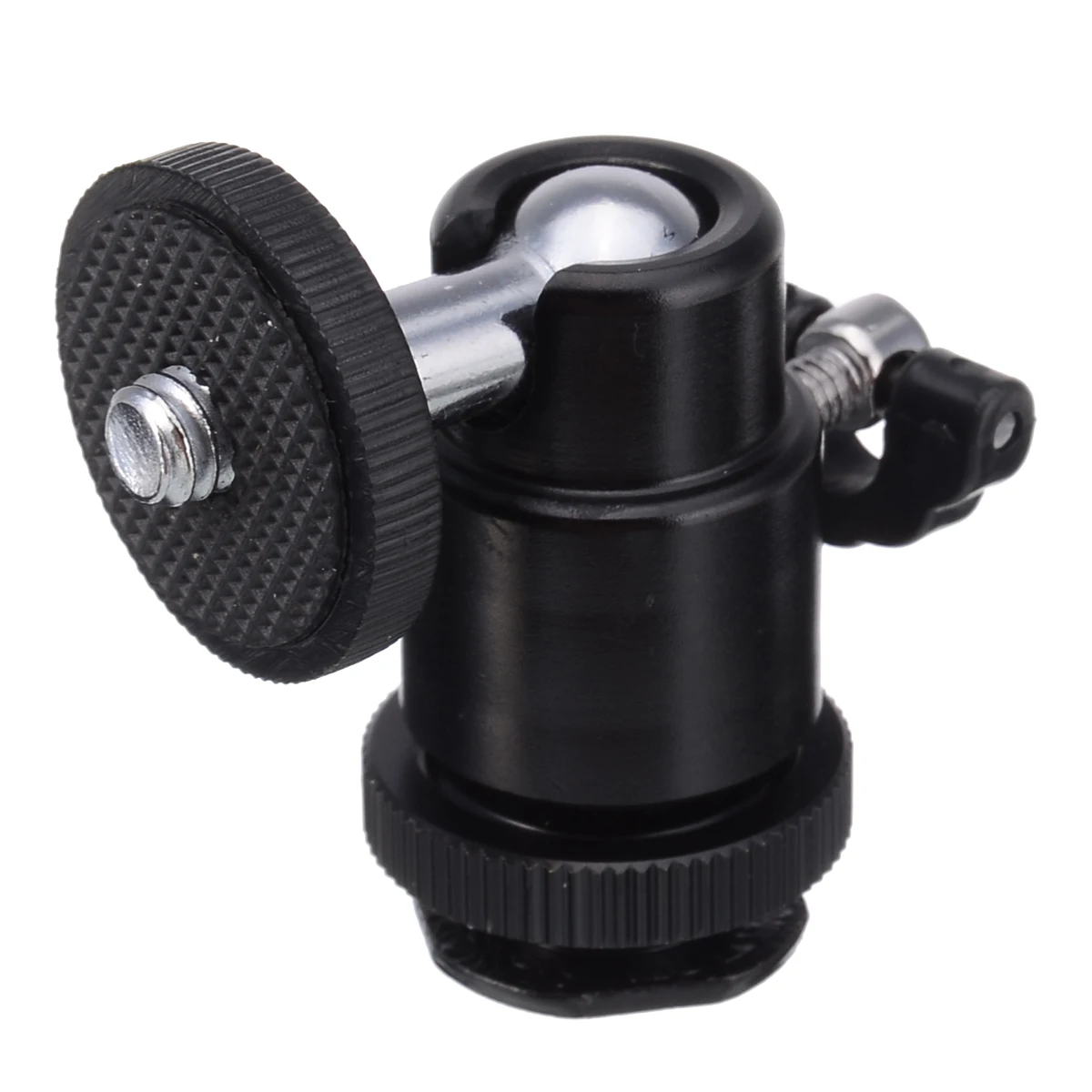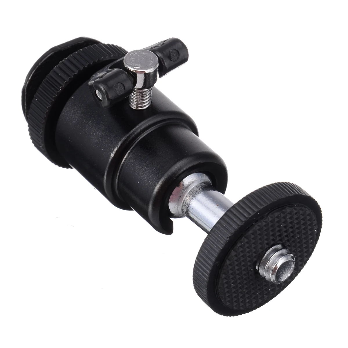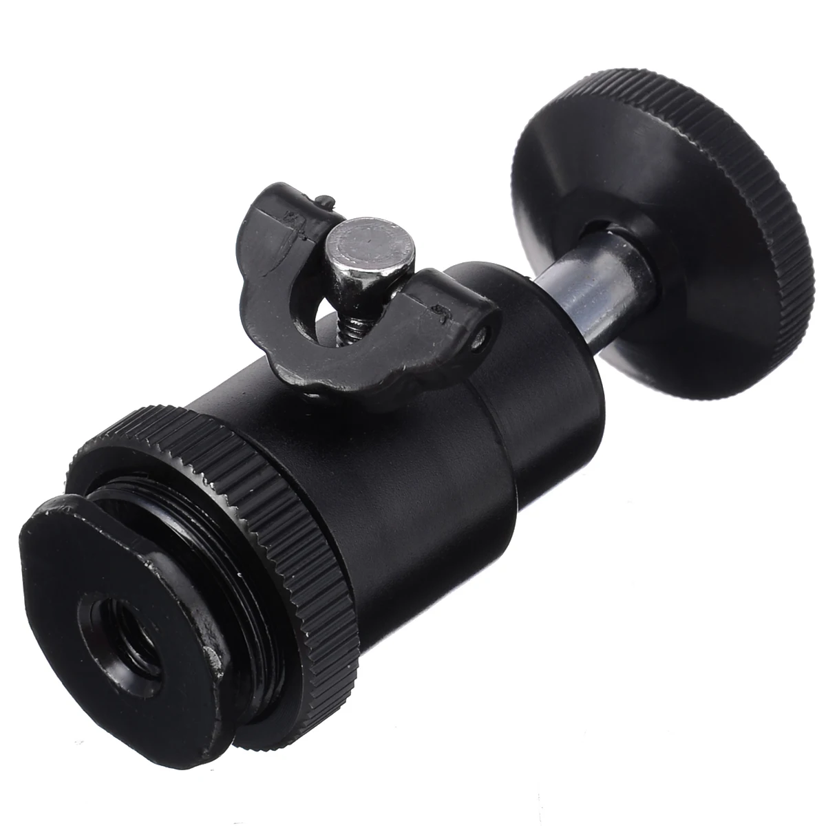 Этот адаптер для горячего башмака имеет резьбовую шпильку 1/4 дюйма в нижней части и флэш-башмак в верхней части.