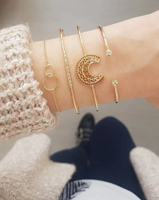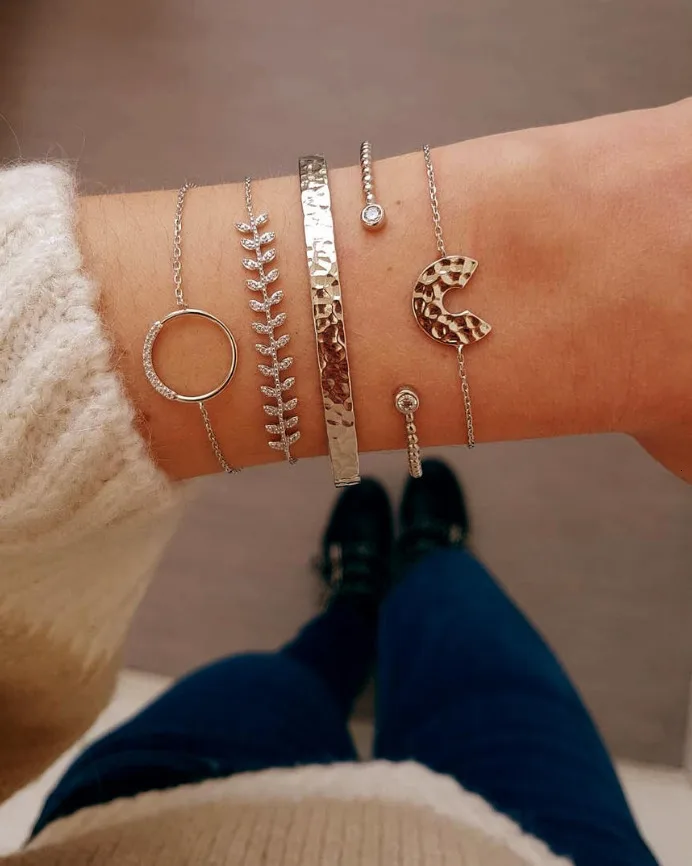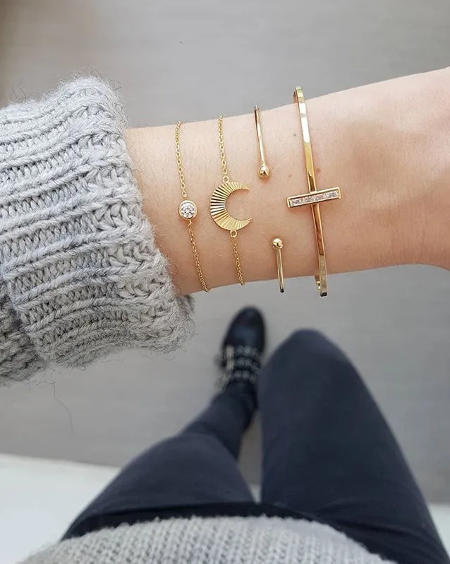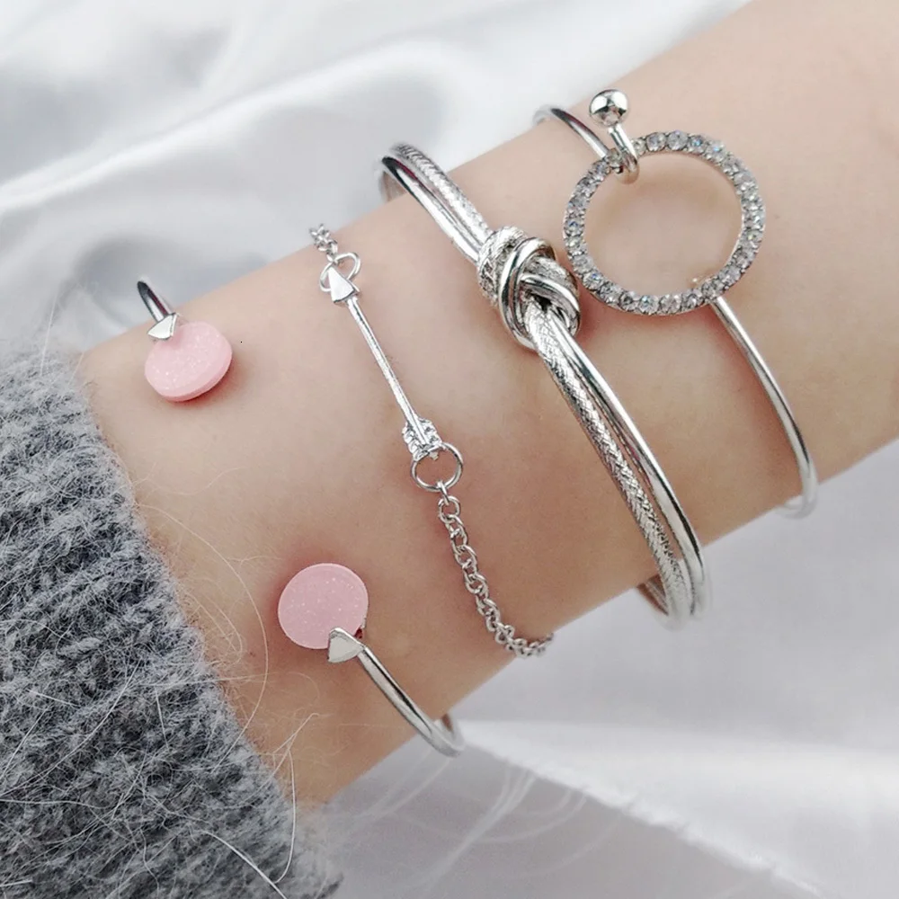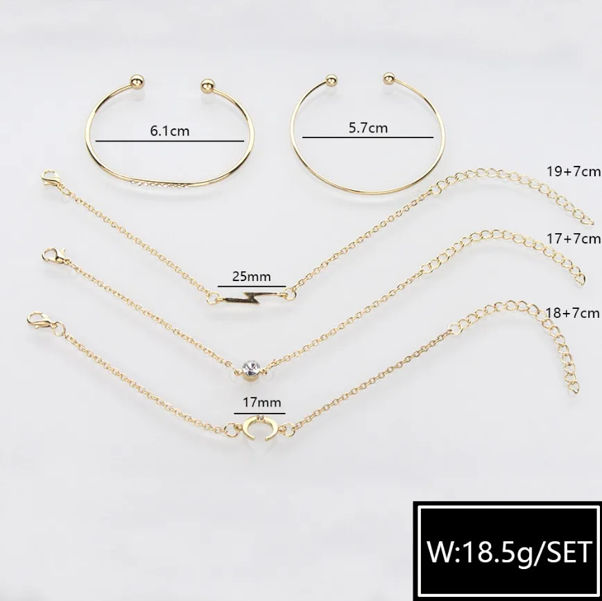 Новые 5 шт/упаковка, шт./компл. Мода золото Цвет сплава в виде сердца со стрелой в форме руля Браслет и Браслеты Набор для Для женщин браслеты с подвесками, открытыми носками, декорированы стразами браслеты манжетного типа