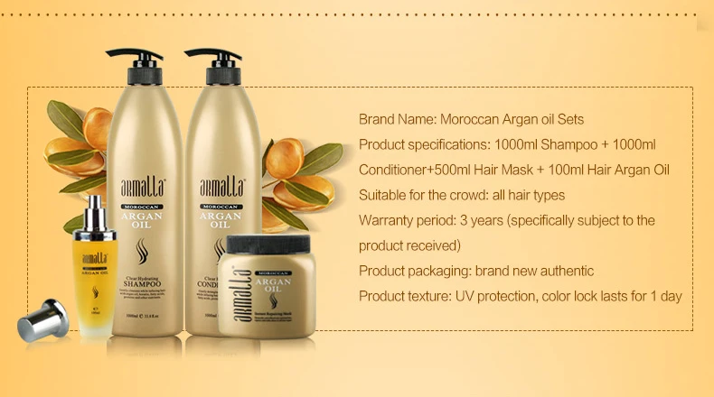 Armalla Moroccan Профессиональный Восстанавливающий сухой шампунь 1000 мл и увлажняющий Кондиционер 1000 мл + маска для волос 500 мл + набор арганового масла 100 мл